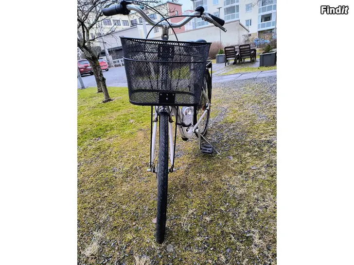 Fungerande samt bra och stadig cykel, 3 växlar, fotbroms, handbroms framtill, lampor fram och bak, varukorg, 2 st. nycklar. Denna cykel är servade varje vår, först tvättad och sen smörjad.