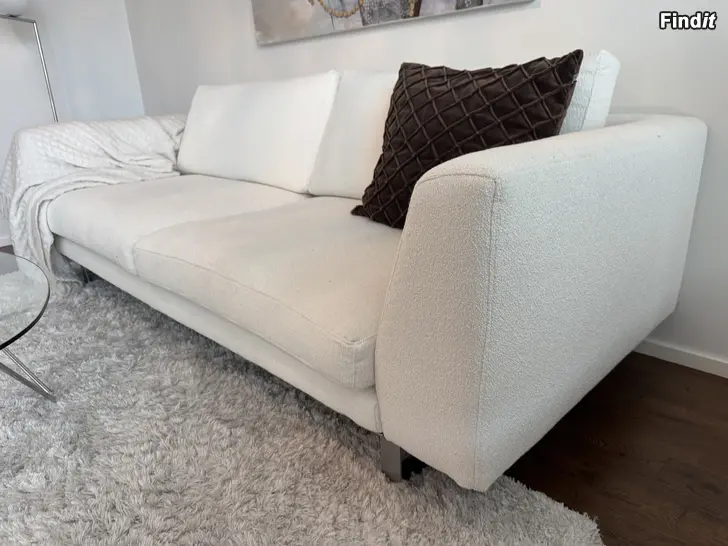Superfin Interface soffa, design Hannele Bondsdorff. Nytt naturvitt tyg, omklädd för 1 år sedan. Sparsamt använt, inga djur eller barn i hushållet. Mått: 220cm lång , 90 cm bred, 65 cm hög. Kan ses och genast hämtas från Vasa.