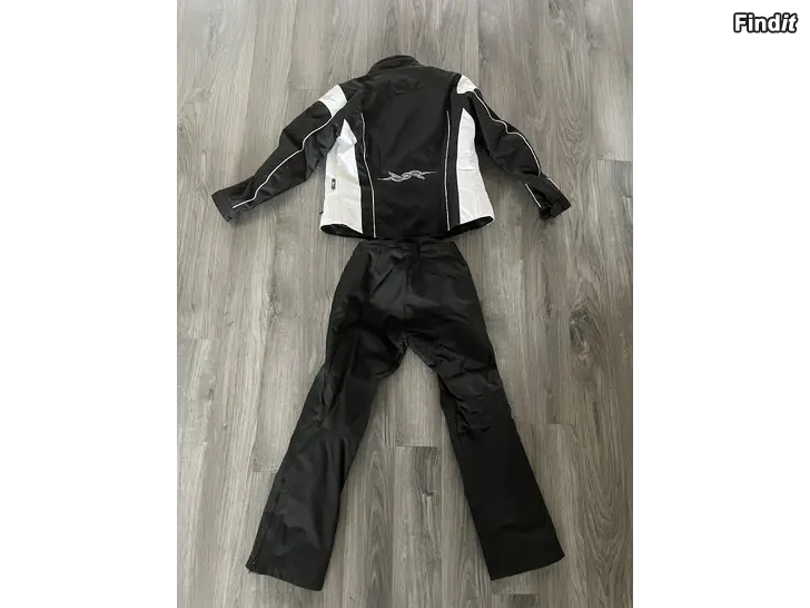 Erittäin vähän käytetty IXS tekstiili takki ja housut. Ollut 160cm normaalivartaloisella naisella. Takissa ja housuissa suojukset ja liitettävissä vetoketjulla toisiinsa. Myös irroitettava vuori molemmissa. En lähetä. Vain nouto.