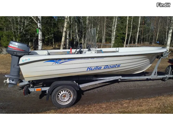 Välhållet och sparsamt använt båtpaket inklusive registrerad trailer. Kulla X-ellent 435 med Yamaha 20 hk 2t, paketet är åm 2006 och jag är andra ägaren, har haft det sen 2012. Båten är självlänsande, så bekymmersfritt när det regnar.. För mig har det inte blivit mer än 5-10 körtimmar per år, har ändå bytt växelolja vartannat år, senast förra hösten. 2020 förnyades styrvajern och styrsnäckan. Båten har vinterförvarats i varmt garage. Med följer också kartplotter Lowrance Elite-5m med karta Storkors-Mansikkakari, alltså ungefär från Korsnäs upp till Kokkola. Check på åror och ankare också, så allt man behöver!