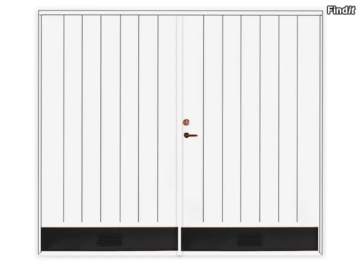 Söker garagedörr med karm i likhet med bilden som öppnas upp i mitten och viks åt sidan, helst isolerad.