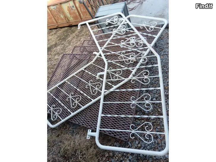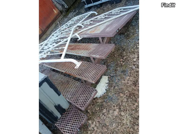 Trappan har totalt 5 trappsteg, höjd ca 90 cm, bräddden minns ja inte men ca 130cm, säljes komplett med räcken som är bara att skruva fast, tel 0400767223