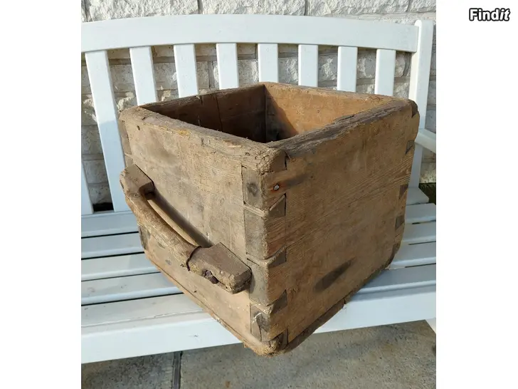 Säljes gammal träkappa. Innermått 30,5 cm x 30,5 cm. Yttermått 38 cm x 38 cm. Höjd 32 cm. Bastant och stabil. Kappan har två handtag. Botten hel. Finns i Nykarleby. Pris 30€.