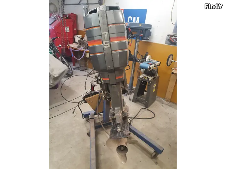 Marinerin 75 hp. 2-tahti perämoottori halvalla.Perämoottorissa arvokas rosteri potkuri.Mukaan tulee joitakin varaosia varaosamoottorista mm.staattori .alakerta,kaasarit hydraulikippi jne.Koneeseen tulee kipinä ,mutta käyntiin ei lähde.Kaasarit ehkä tukossanykybensiini tai bensapumppu?Ollut varakoneena ja kun venekin on myyty niin vie vain tilaa tallissa.Mukaan tulee myöskin kaukohallintalaite,tottakai.