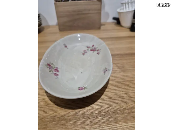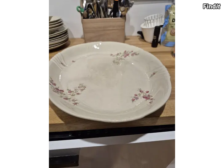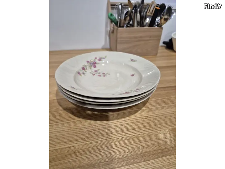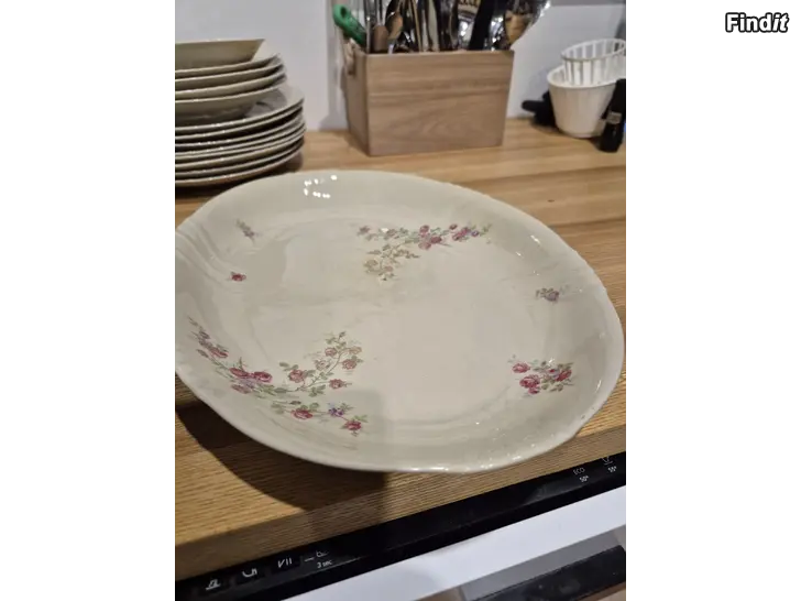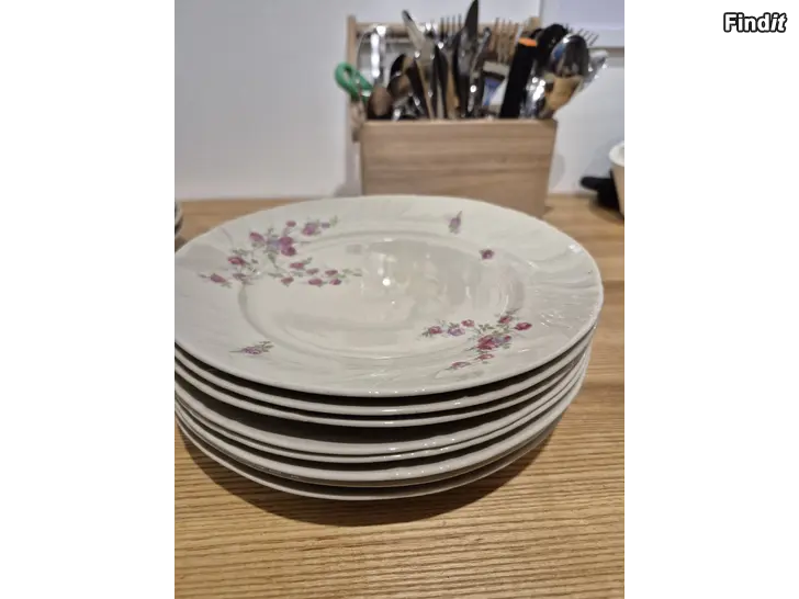Inga-Liisa pikkukukka 4 djuptallrikar i bra skick 8 flata tallrikar I bra skick 3 serveringsfat, de större har lite missförgning på ytan och det minsta en mörk prick