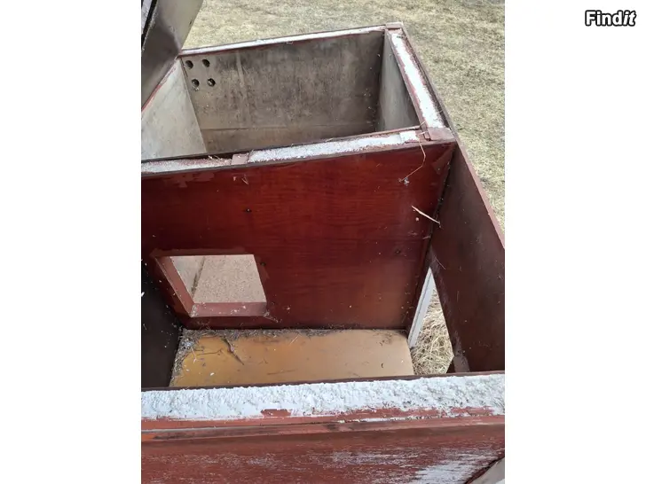 Taket öppningsbart med gångjärn eller avtagbart för städning och strö.