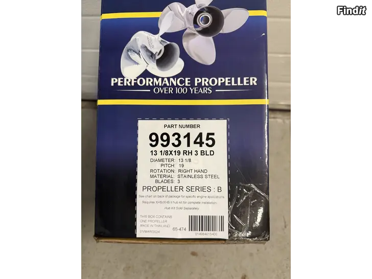 Ny oanvänd rostfri propeller som blev överlopps när jag bytte båt. 13-1/8x19. Inget nav fås med. Hade en likadan på en Honda 90hp från 2006. Nypris 470€.