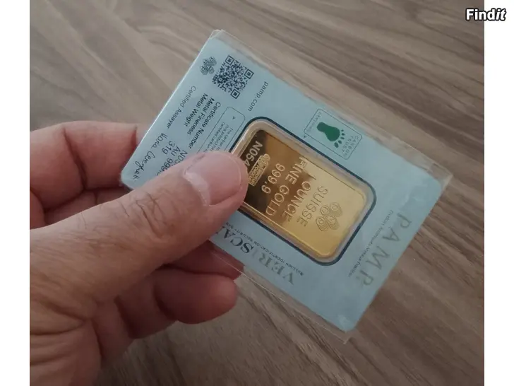 Guld tacka 24k Pamp 1-ounce 31.1g Ny i certifierad förpackning. QR kod, serie nummer finns på förpackning och tacka. Inköps kvitto finns. Pris. 4000euro