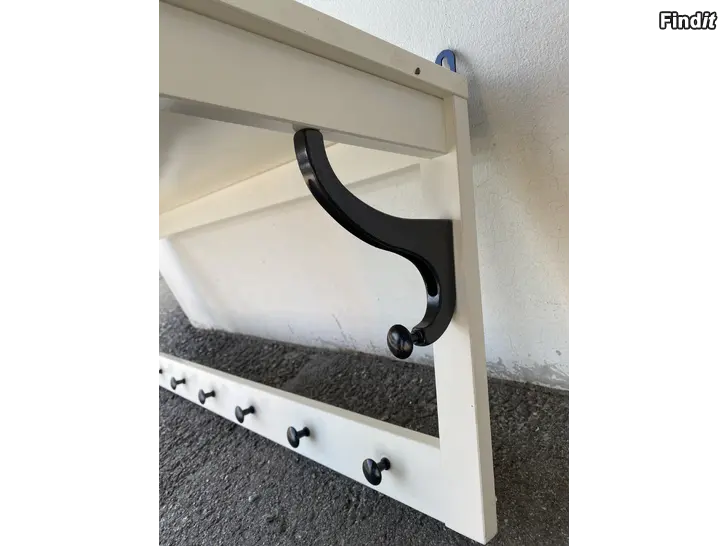 Hatthylla. Ikea, HEMNES Bredd 85 cm, djup 33,5 cm. Litet spår av användning, men inget som syns när hyllan är på väggen. Finns i Smedsby.