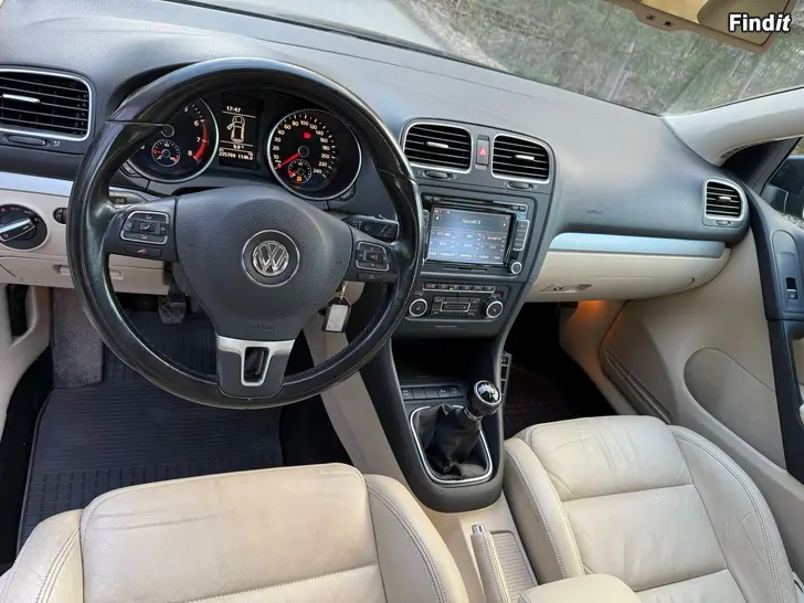 En mycket välskött och fin Golf 6 säljs. Bilen är ovanligt ren och välhållen både utvändigt och invändigt, och sticker ut från andra Golfer tack vare sin färg och den ljusa läderinredningen.