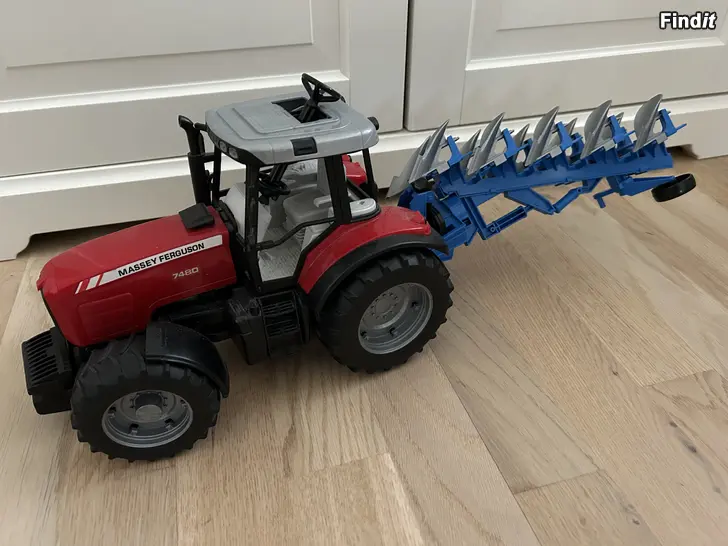 Bruder John Deere traktorer, Massey Ferguson, släpvagnar, plogar, frontlastare, schaktblad mm.