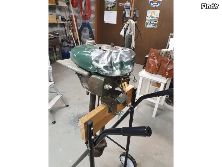 Renoveringsobjekt eller som reservdelsmotor. Motorns övre del är skadad och förgasaren fattas.