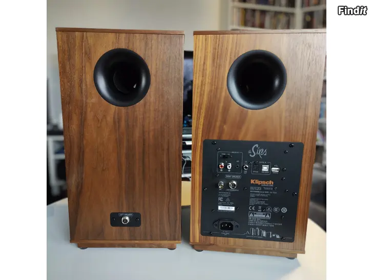 Till salu ett par snygga och välljudande aktivhögtalare. God om ingångar: digitala, analoga och Bluetooth. Utgång för subwoofer. Fjärrkontroll.