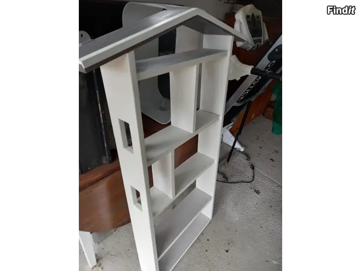 En vit och gråmålad hylla passande till t.ex lekrum eller barnkammare