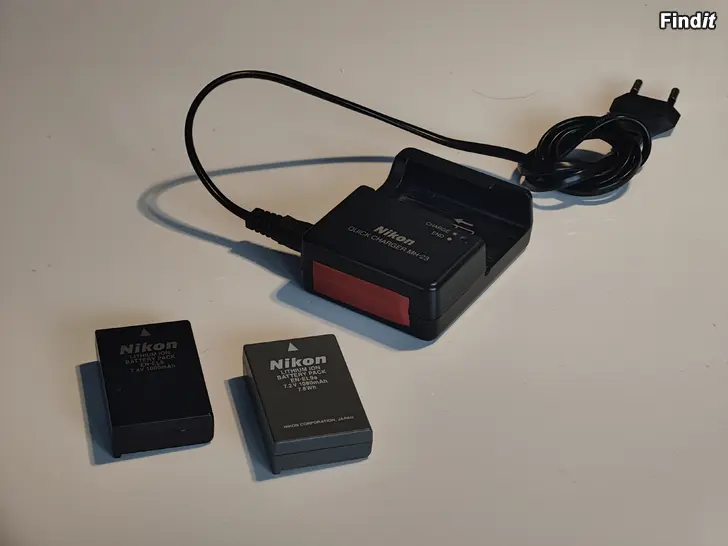 Nikon D40 + AF Nikkor 18-55 objektiv. Lämplig som nybörjarkamera. Två batterier och laddare följer med.