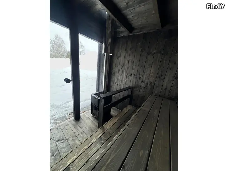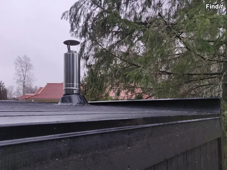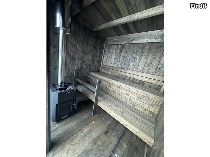 Nytillverkad gårdsbastu inklusive kamin och skorsten säljes.