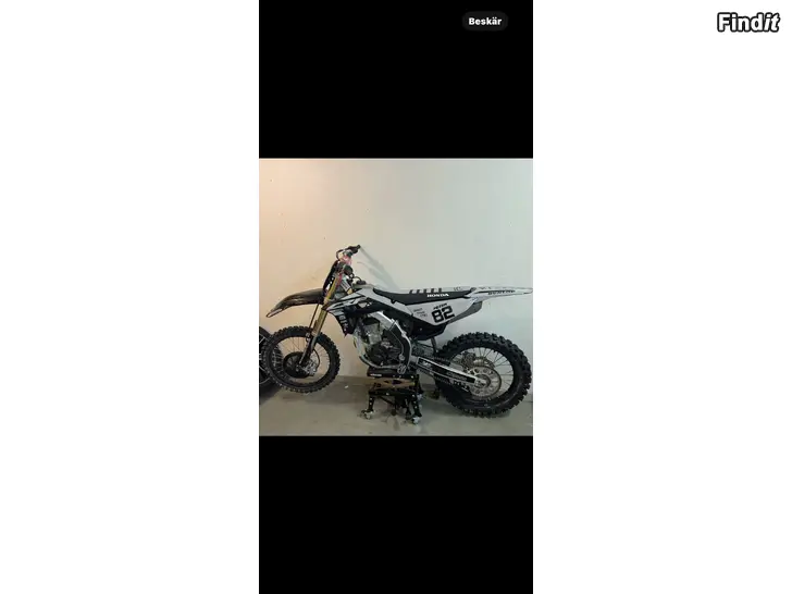 Hej jag har en Honda CRF250R i topp skick Helt nytt helsystem yoshimura RS12, kvitto på det finns 15000kr Den är mappad från fabrik med 3 olika mappningar som man bara trycker på knappen för olika körlägen