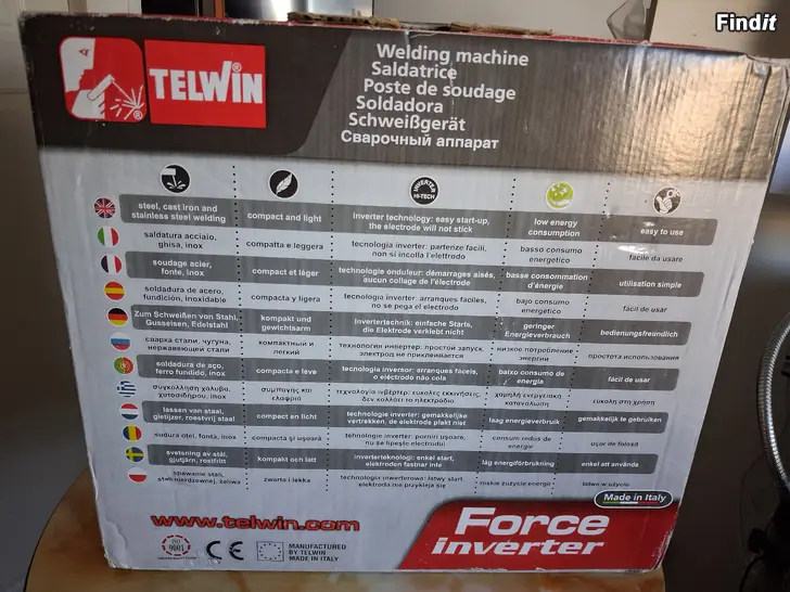Italialaisen Telwinin yksivaiheinen, pienikokoinen ja kevyt invertteri puikkohitsaukseen. Nopeus ja säätötarkkuus takaavat erinomaisen hitsaustuloksen kaikentyyppisillä hitsauspuikoilla. Invertteritekniikan ansiosta kevyt ja helppo liikutella. Vakaa hitsausvirta päävirran vaihtelusta huolimatta. Hitsausvirta-alue 10-130 A. Sytytyspulssi Hot Start, dynaaminen valokaaren säätö Arc Force ja tarttumisenestotoiminto Anti Stick. Kätevässä muovisalkussa kaapelit, maski ja kuonahakku. Tämä on uusi. Jäänyt käyttämättömänä makaamaan varastoon. Nouto Vaasan keskustasta.