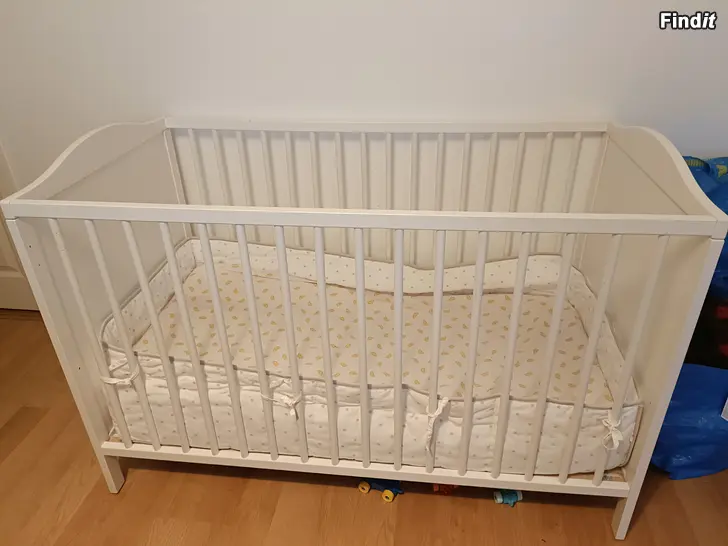 Säljer en spjälsäng i bra skick. Grindskydd, madrass och madrasskydd medföljer om så önskas. Hämtas i Solf.