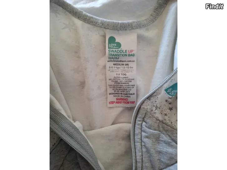 En Love to Swaddle up 50/50 warm sovpåse / unipussi säljes, storlek M/6-8,5 kg/3-6 månader. Avtagbara delar för armarna. Ena vingen har små lappade hål, men det är inget som stör användningen.