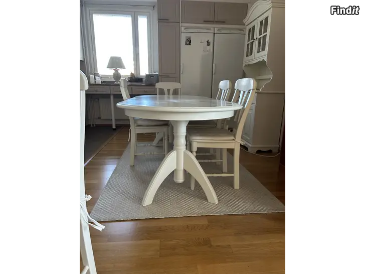 Köksbord i trä, vitmålat, 165 cm x 95 cm, utdraget 200 cm