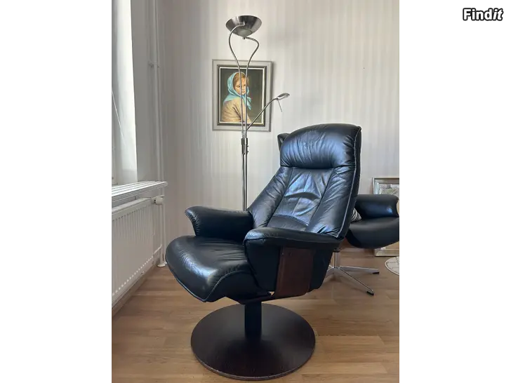 En bekväm läderstol med nedfällbart ryggstöd.