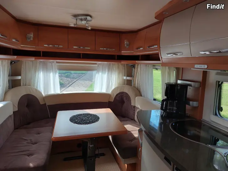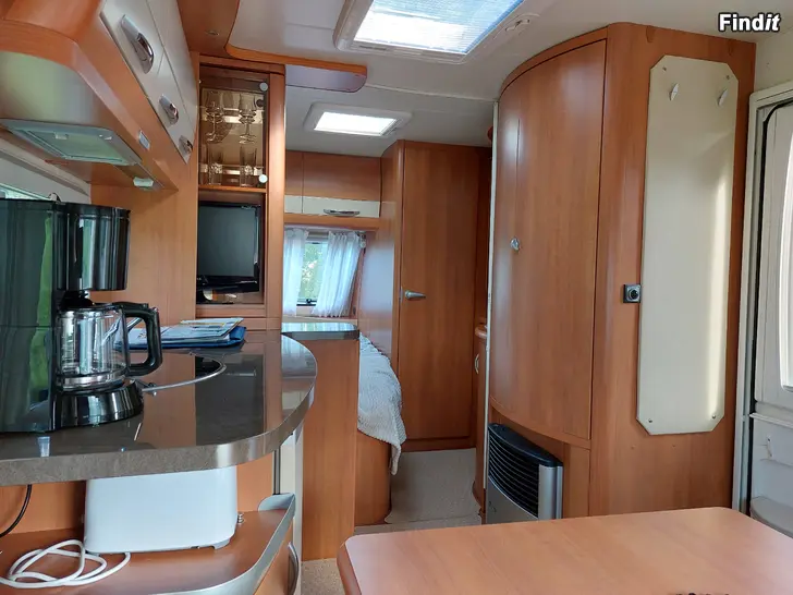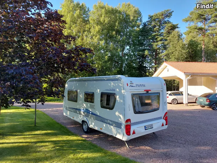 Säljes en Hobby 495 UFe årmodell 2009 i bra skick. Förvarad inomhus september-maj och endast använts under sommaren. Allt fungerar och besiktningen gäller till 31.12.2027. El golvvärme och Truma luftvärme med gas och el. Varmvattenberedare, toalett med separat vattenbehållare och kasettavloppstank. Kylskåp som går på gas och el. TV + antenn, 2 takluckor och utemarkis. Sovplatser för 4 personer. Utbäddbar soffgrupp och skild parsäng med förvaringsutrymme under. Rum för två gasflaskor. Nya däck monterade senaste sommar. Allting är rent och snyggt. Vagnens egenvikt är 1200 kg och totalvikten är 1400 kg vilket gör att den är mycket lätt att dra och detta innebär låg bränsleförbrukning.
