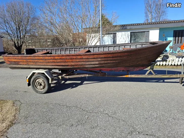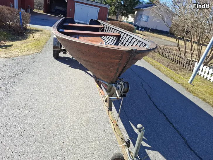 Båten är 5,15m lång och 1,83m bred. Byggår 1997. Köl och akter av lärkträd. Bord av furu, nitade. Ytbehandlad med tjära och linolja. Säljes som obehövlig, stått på land i ca 15 år.