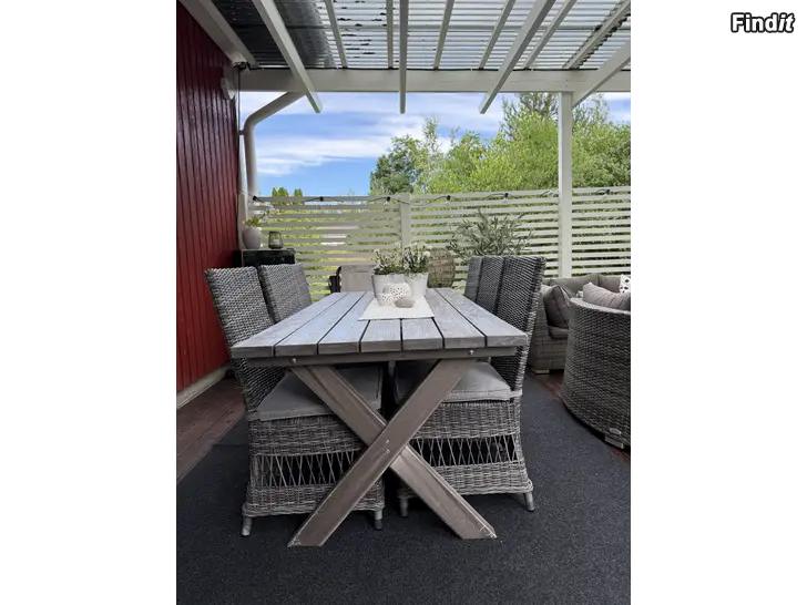 Säljes ett terssbord med sex stycken tillhörande stolar + sittdynor från märket Hillerstorp Sweden. Allt i toppskick. Finns att hämtas i Malax.
