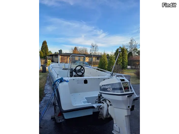 Yamarin 470 + Johnson 40, årsmodell 1989. Bra fungerande båtpaket. Körd i sötvatten. Svart bottenfärg, trailer medföljer ej. Båten finns till påseende i Furuholmen, Larsmo