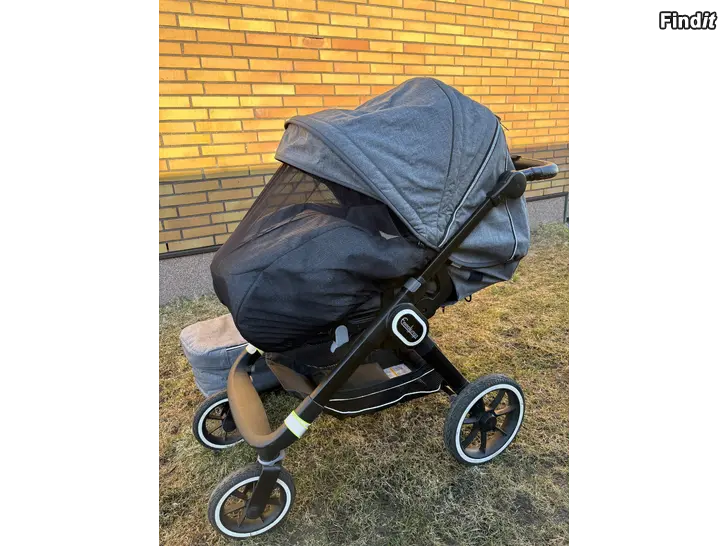 Välhållen och omtyckt barnvagn säljes. Liggdel och sittdel i utmärkt skick, alltid förvarats inomhus. Använt av ett barn. Sittdelen kunde barnet sova i till nästan 3 års ålder, efteråt har det använts vid promenader en hel del. Sittdelen går att lägga i helt rakt liggläge. Medföljer reflexkåpa och regnskydd. Solskydd och flugnät sitter fast i båda vagndelarna. Stadigt och bra vagn för att gå på plan mark, inte för terrängmiljö. Tar lite utrymme ihopfällt så ryms bra i en mindre baklucka.