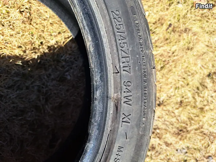Säljes 4 st 225/45-17 sommardäck.Yta kvar till slitageindikatorn 2-4 mm. Finns i Jakobstad.