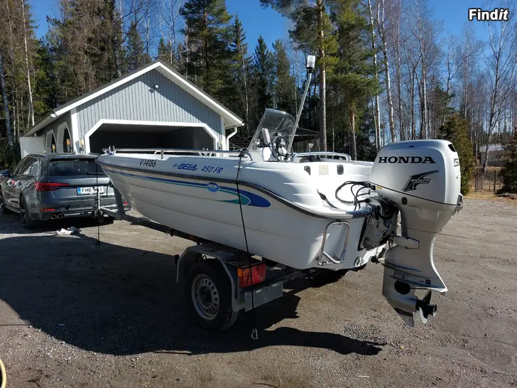 Säljes fin bella pga av lite användning, fungerar felfritt. Billig att köra. Båten är självlänsad Plotter samt ekolod finns monterad. Hondan är årsmodell 2008 och direktinsprutad och båten 1996 Aku 700 trailer som är oregistread. Servad varje vår
