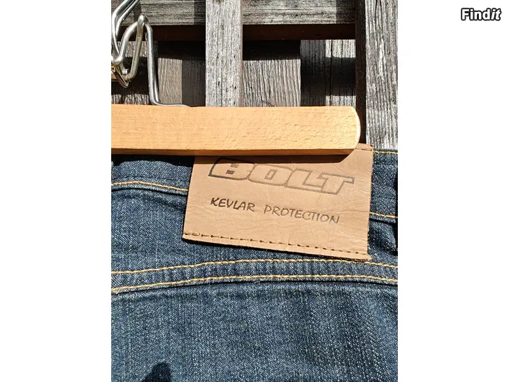 Säljes mörk blåa Bolt kevlar byxor utan skydd. Byxorna har blivit använda ett par gånger per säsong så dom e i bra skick. Stl.W28 L34.