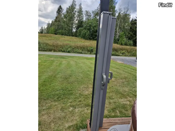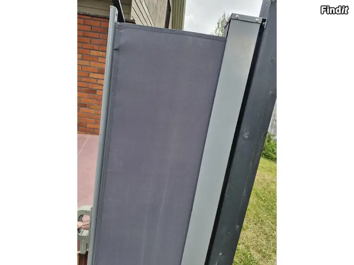 Två st. Sidomarkiser med måtten, höjd 1.60 och längd 3 meter. Färg mörk grå. Säljes för 30€ styck.