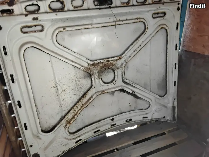 Volvo 244 konepelti jonkin verran ruostetta, mutta ei lommoja