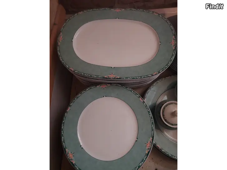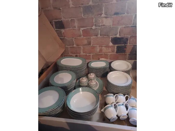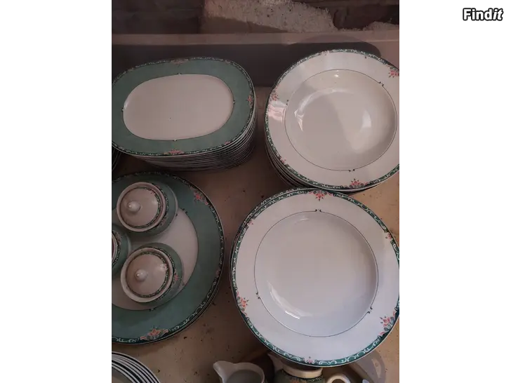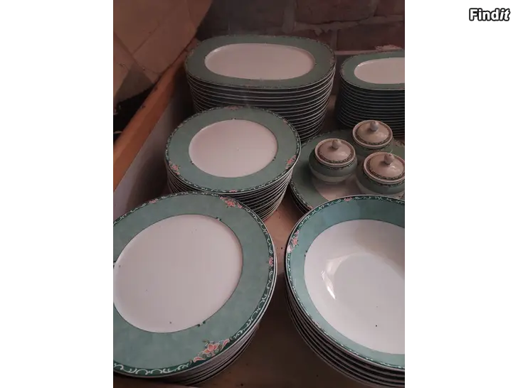 32 st Mattallrikar 34 st Djuptallrikar 18 st Ovala Mattallrikar 18 st Ovala Assietter 8 st Djupa Serveringsskålar till sallad eller Potatis 3 st Sockerskålar med lock 3 st Gräddsnäckor 3 st stora Fat/ Tallrikar Vissa kan ha något hack, men majoriteten e i gott skick. Allt tillsammans för 50€