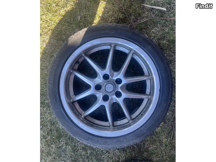 4 st fälgar 17 tum som suttit på en V70 1999. Inte nå mycket kvar av däcken , Spår av andvändning finns . Finns l Närpes