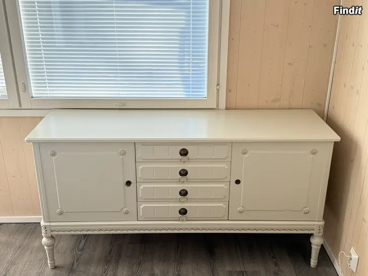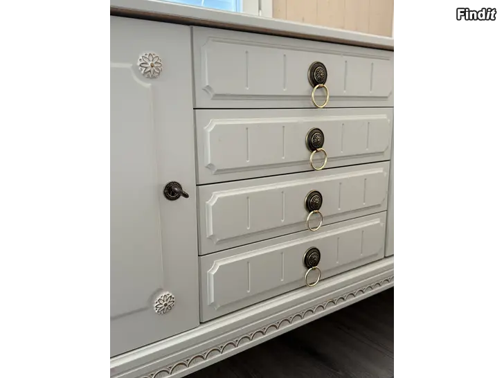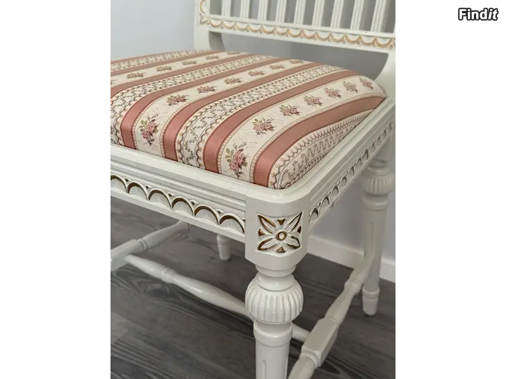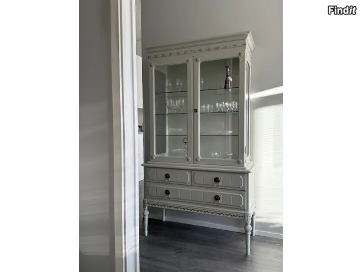 Säljer ett vackert gustavianskt möbelset från Jurva. Setet består av ett utdragbart bord, 4 stolar, ett vitrinskåp samt en byrå.