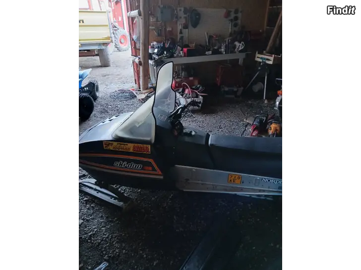 Säljes en ski-doo Nordik i gott skick för sin ålder som har en 2cyl 377cc motor luftkyld enkel förgasare. Säljes på grund av tidsbrist å andra prioritetingar. Skotern är registrerad. Sitsen för tillfället lös men på plats. Vid senaste provkörningen gick den inte på högvarv trots förgasar puts, ny bränslepump finns men ej monterad å testad ännu. Ny tändspole lagt åt ena cylindern. Hastighetsmätaren funkar ej annars iskick. Ta kontakt för mera info samt intresse.