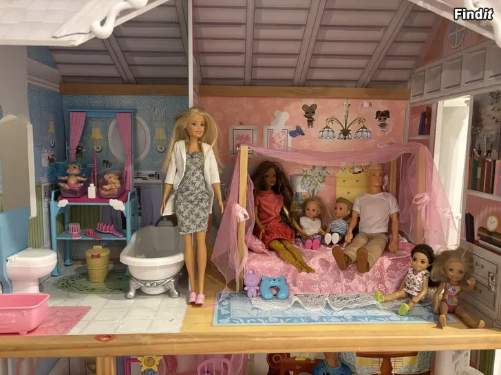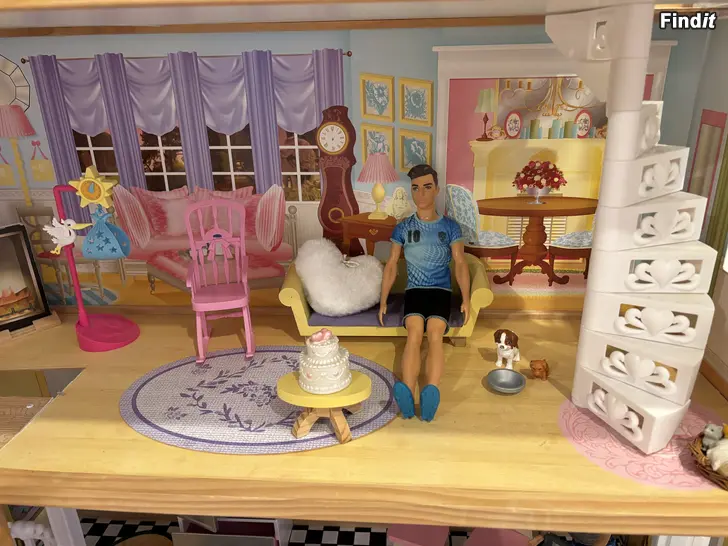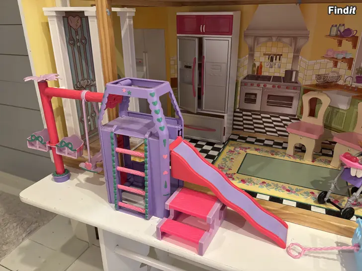 Barbiehus med rekvisita