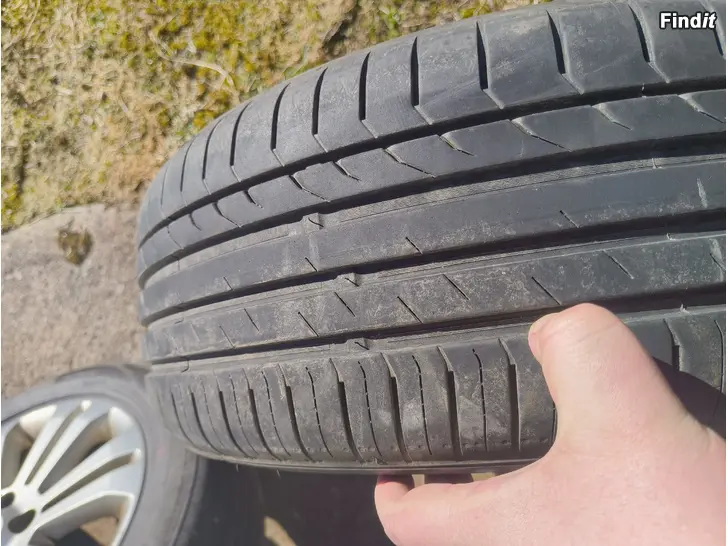 Sommardäck med tillhörande fälgar som har suttit på en 2009 Ford Mondeo, så fälgarna är Ford original. Bultmönster på fälgarna 5x108. 2st av däcken har 3mm kvar. De andra 2st har 5mm kvar. 205/55R16