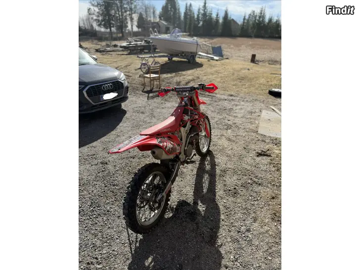 Myynnissä hyväkuntoinen Honda CRF 450 R ruiskulla, millä ajettu 145h. Öljyt vaihdettu säännöllisesti. Vaihdan mielellään tieliikennekelpoiseen pyörään. Itse ajanut 5 vuoden aikana vain noin 25 tuntia.