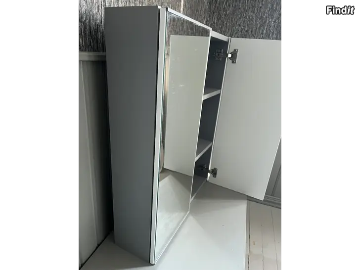 Badrumsskåp Enhet/Ikea 80x17x75 cm, två hyllor och spegeldörrar. Använd kort tid.