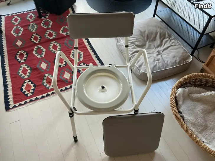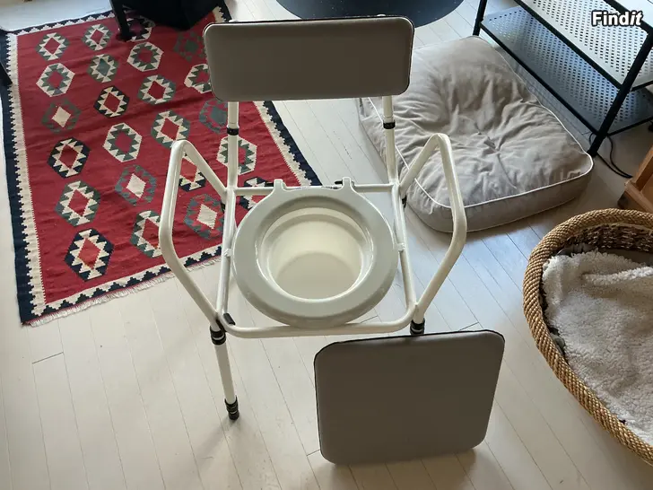 Apukaupasta viime syksynä ostettu wc tuoli. Käytetty noin 20 kertaa. Pytyn pyöreässä muovikannessa modifiointi, joka helpottaa kannen avaamista. Ilman modifiointia kannessa ei ole kunnon otinta johon tarttua. Tuoli on käytännössä uuden veroinen ja valmiiksi koottu.