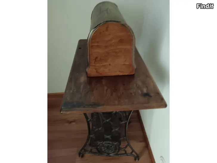 Hyvässä kunnossa oleva Vintage puinen/metallinen jalalla poljettava ompelukone. Koneessa kaunis kirjailu Singer brändille. Keräilykappale!