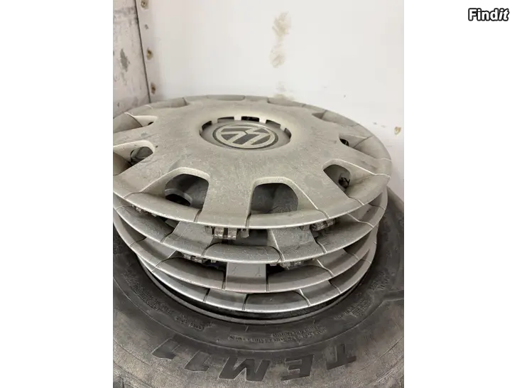 Säljes 14 tums plåtfälgar med däck. Navkapslar följer med.