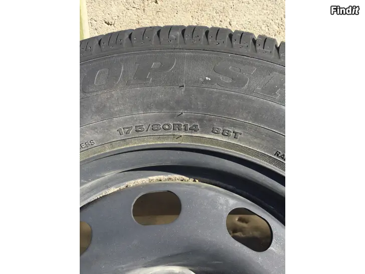 1 st. Sommar Däck på fälg 175/80 14” Dunlop. Bra mönsterdjup.