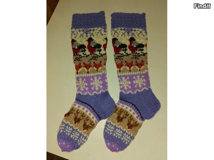 Villasukat 7 veljestä langasta. Varren mitta 35 cm ja jalkaterä 26.5 cm. Postikulut tarvittaessa 4e Postin s-kokoisessa paketissa manner-Suomen alueella. samassa paketissa mahtuu myös muuta.