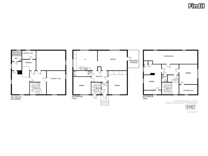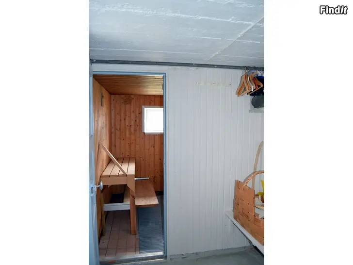 På bostadsvåningen finns två sovrum, vardagsrum, kök, badrum samt balkong. Övre våningen omfattar två rum, WC och förråd. I källarvåningen finns pannrum, tvättstuga, bastu, förrådsutrymmen och garage.